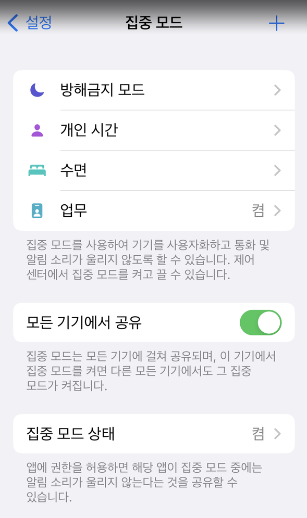 애플이 제공하는 '집중모드'를 사용하는 것이다.