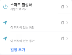 여기서 위치, 시간, 앱 등의 복수의 조건을 설정하면,,