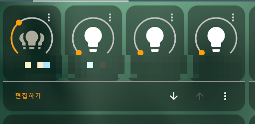 오른쪽 위 쩜쩜쩜을 누르면 (설치된 조명 기능에 따라) 밝기 조절, 색 조절이