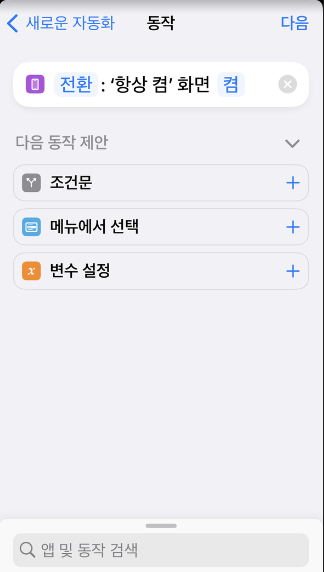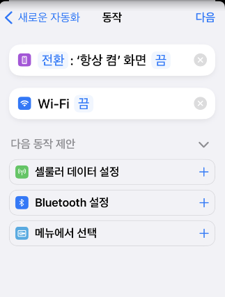 동작 다 설정했으니' 오른쪽 위 '다음'을 누르자.